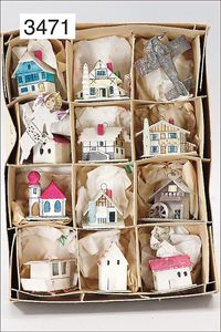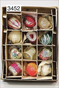 Konv. Weihnachtsschmuck, leonische Drähte, Glas, Watte, Oblatenbilder, ca. 12 Teile, schönes Konv.