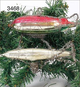 2 Teile, Zeppeline, mit leonischen Drähten und Tinsel, 1 x silber, 1 x rot/grün/gelb, mit Gondel