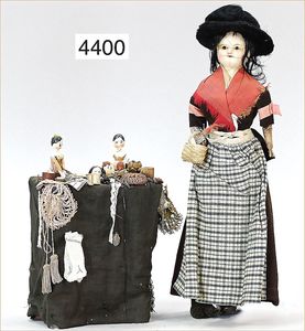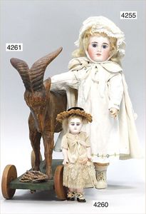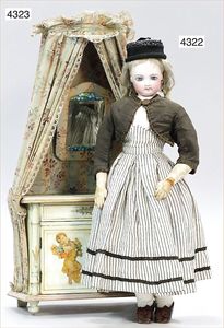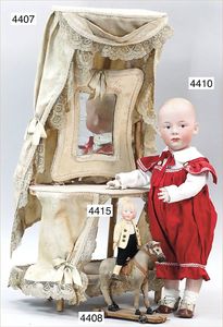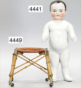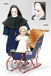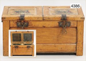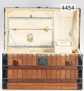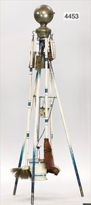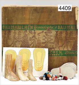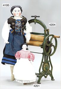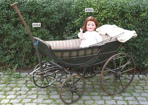 MÄRKLIN ca. 1901, Putz-Set, 590, abgebildet im Märklin-Nachdruck-Spielzeugkatalog Band 1, "Technisches Spielzeug im Wandel der Zeit", Seite 2,3,4, Tafel 68, 85 cm hoch, oben Schmutzbehälter zum Aufklappen, Blech vernickelt, innen lackiert, Blech-Beine, mit Orig.-Putzutensilien, Besen, Kehrschaufel, kleiner Eimer, Dachbodenfund, mit altersbed. Lackfehlern, dieses Teil ist uns nur aus Katalogen bekannt, wurde bisher nach unseren Informationen noch nie auf einer Auktion angeboten, absolut selten