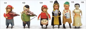 SCHUCO Tanzfigur, Affe mit Geige, Blech, Filzkleidung, Uhrwerk intakt, guter Zust., 11 cm