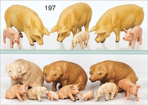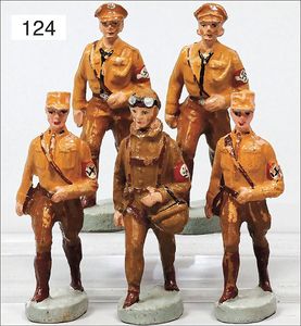 ELASTOLIN 2 SA-Figuren, 7 cm, Masse, dazu 2 Figuren ungemarkt, 1 Flieger, Zust. 2-3