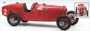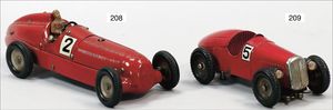 ALFA ROMEO Rennwagen, Blech, rot lackiert, 53 cm, Uhrwerk intakt, 4 Gummireifen, Lack orig.?, Lötstelle am Auspuff vorne lose