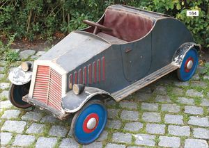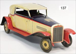 Motorkutsche, Blech lithogr., Uralt, 16 cm, Speichenräder mit Gummibereifung, guter Zust.