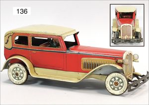 FISCHER Limousine, mit Fahrerfigur, Blech lithogr., 27 cm, Dach möglicherweise farbl. ausgebessert, Uhrwerk intakt, guter Zust.