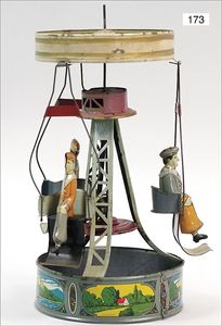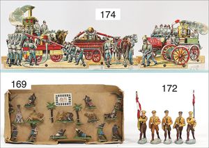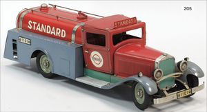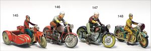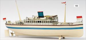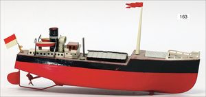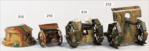 BING 130/206, ca. 1930, kl. Lokomobil, Grundplatte 20 x 10 cm, Blech, Kachelmuster, Kesseldurchm. 3,5 cm, Messing, Schornstein, oszillierender Zylinder, Pfeife, Brenner, Krone am Schornstein übermalt, sonst sehr guter Zust.