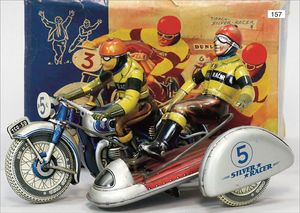 Überschlagauto, Blech lithogr., mit Fahrerfigur, 25 cm, Uhrwerk intakt, gut, leicht bespielt
