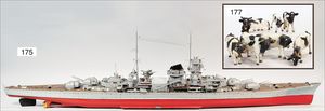 BING 130/523, ca. 1912, stehende Schiffsdampfmaschine, Grundplatte Holz 46 cm x 22 cm, mit Blechplatte, Kachelmuster, Schornstein, Pfeife, Wasserstandsglas, Brenner, Lampe, Dynamo, Regler, Durchm. Kessel 8,5 cm, Messing brüniert, altersbed. Lackfehler an der Bodenplatte, sonst gut