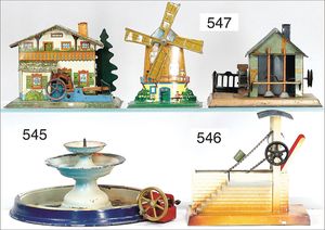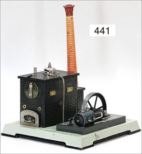 BING 10/16/5, ca. 1927, Dampfmaschine, Grundplatte 30,5 x 26,5 cm, Blech Kachelmuster, Kesseldurchm. 6 cm, Schornstein, Pfeife, Manometer, Wasserstandsglas, Brenner, altersbedingte Lackfehler a. d. Bodenplatte, sonst guter Zust.