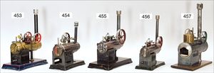 FALK 456/1S, ca. 1909, stationäres Lokomobil, 26 cm, Kesseldurchm. 8 cm, Messing brüniert, Pfeife, Schornstein, Wasserstandsglas, Brenner, Speisepumpe, Sockel Guss lackiert, kl. Brandfehler, insges. guter Zust.