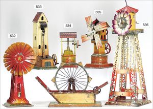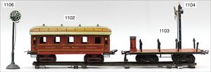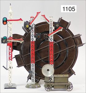 Fundkiste bestehend aus Handdrehscheibe, Spur 1, MÄRKLIN, 3 Flügelsignale, 1 Scheinwerferwagen, Blech