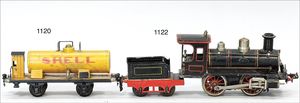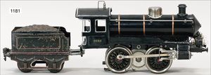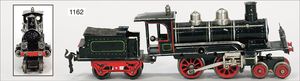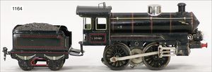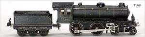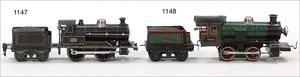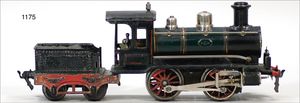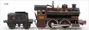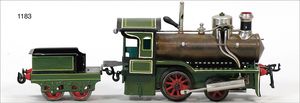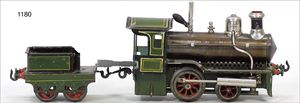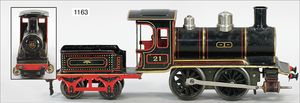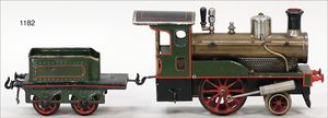 CARETTE Spur 0, Storchbein-Lokomotive, 28 cm, Spiritusantrieb, 1A, farbl. überarbeitet, Tender nicht orig.