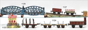Konv. Gleismaterial, MÄRKLIN und BING, Spur 1, Uhrwerk, ca. 40 Gleise, gerade und gebogen, 2 x Kreuzung, 1 Weiche, Schienenanleitungsheft, Spur 1, nicht fotografiert