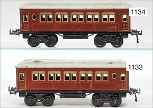 BING Spur 1, 4-achsiger Personenwagen, Blech lithogr., bespielt, kl. Lackfehler