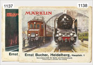 MÄRKLIN Hauptkatalog, 1937/38D, 76 Seiten, Eisenbahn, Dampfmaschinen, Militärspielzeug, Fahrzeuge, Kreisel, Fahrtengeräte, Luftschiff mit Gutschein, Gleispläne und Betriebsanleitungen, Katalog-Einband liegt lose bei, sonst Zust. 2