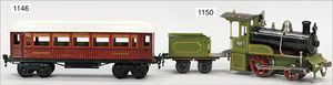 MAMOD Spur 1, Tenderlok, spiritusbetrieben, 3 Abteil-Wagen, Blech, 2-achsig, guter Zust.