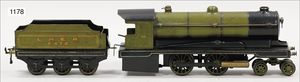 MÄRKLIN LNWR, Spiritus-Lokomotive, Spur 0, B, 31 cm, Tender wohl nicht orig., teil. Überstrichen