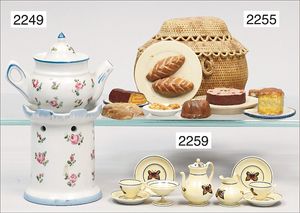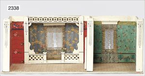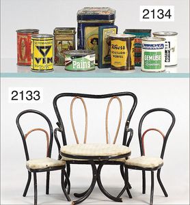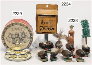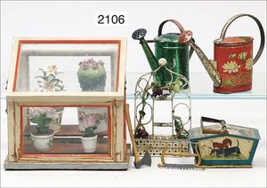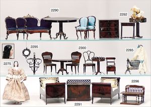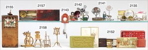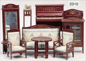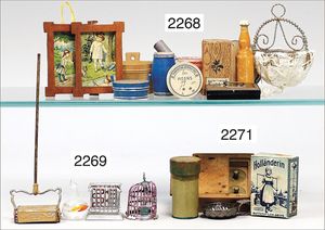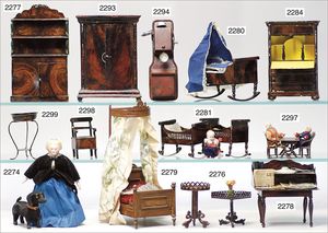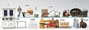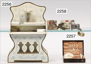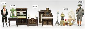 Konv. Schlafzimmer-Möbelprogramm, 1 x Schrank, 2-türig, verspiegelt, 10 cm breit, 1 x kl. Schminkschränkchen, 5 cm breit, 6 Schubladen, Marmorplatte, kl. Spiegel, dazu passend 1 Kommode, mit 3 Schubladen, 1 Knauf fehlt, 5 cm breit, mit Marmorplatte, 2 Holzbetten, 12 cm lang, Spiegel, 22 cm hoch, mit Marmorplatte, 9 cm breit, schönes Konv., 1 Nachttisch, Marmorplatte beschädigt