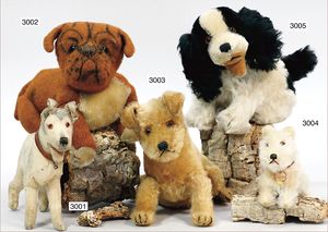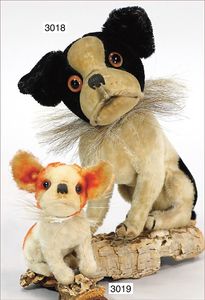 STEIFF Fox-Terrier, ca. 1910, mit Knopf, langgezogenes F, sitzend Höhe 11 cm, Wollplüsch, stark bespielt