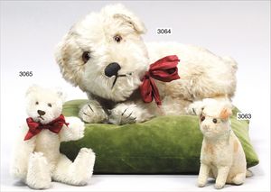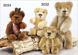 STEIFF Revue Susi, mit Knopf, Schild und Fahne, Nr. auf der Fahne 4300,35, Sitzhöhe 35 cm, drehbarere Kopf, sehr schöner Orig.-Zust., Mohair, schöne, kräftige Farben