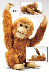 STEIFF Purzel-Schimpanse, ca. 1910, mit Knopf, 23 cm, Filzgesicht unbespielt, rot/braunes Mohair in schöner kräftiger Farbe, selten, guter Zust., Purzel-Mechanik intakt
