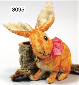 STEIFF Vorkriegs-Hase, sitzend, orange farbenes Mohair, stark ausgegangen, mit Ohren 27 cm, gr. Glasaugen, drehbarer Kopf