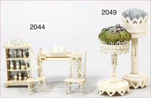 Ausschmückungsteile, Bein, Tafelklavier, 1 Kerzenhalter fehlt, 6,5 cm breit, 2 Stühle,1 Lehne gebrochen, 1 Sessel, Beine gebrochen, kl. Regal, 7,5 cm, filigrane Arbeit