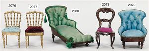 ROCK & GRANER, Biberacher Blech Sessel, mit blauer gepolsterter Seide und Armlehnen, bestickt mit kl. Goldperlen, filigran gearbeitet, 10 cm hoch, selten