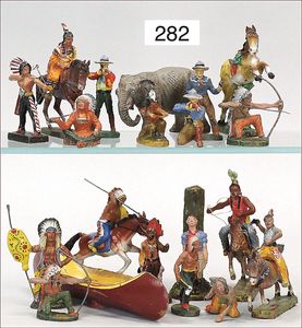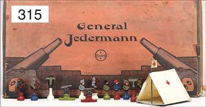 gr. Konv. Zinnfiguren, meist um 1900, flach, 3 cm, insgesamt ca. 2479 Teile, meist Heinrichsen Nürnberg, 50 Teile Artillerie (Kanonen, Pferdegespanne, Zugwagen, Munitionswagen), 5 Gruppendarstellungen, ca. 522 Reiter, 16 Pferde, ca. 1855 Fußsoldaten, 1 Kanonenfeuer, Darstellung der Soldaten aus der Epoche Napoleons, Freiheitskriege, darunter Napoleon, Kaiser von Österreich, Zar von Russland, König von Preußen, uvm., wohl Darstellung der Völkerschlacht bei Leipzig, 1813, genaue Auflistung der Figuren liegt vor, dazu kl. 4-seitige Broschüre "Die Schlacht bei Leipzig", im Jahr 1813, Beschreibung der Schlacht vom 14. bis zum 18. Oktober 1813, dazu passend angefertigter Schrank