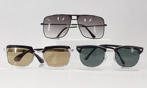 Konv. Vintage Polaroid Sonnenbrillen, Nerd, 80er Jahre, ungetragen, 1 x 4-eckige Sonnenbrille, schwarz verlaufende Gläser, 1 x Typ Boing Brille 80er Jahre, gefärbte Gläser, schönes Konv.