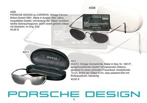PORSCHE DESIGN by CARRERA Vintage Carrera Brillen-Gestell 5681, Made in Austria, 80er Jahre, vergoldetes Gestell, Umrandung der Gläser versilbert, leichte Gebrauchsspuren, leicht violett getönte Gläser, mit Gleidsicht, im Orig.-Etui