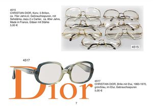 CHRISTIAN DIOR Konv. 5 Brillen, ca. 70er Jahre, kl. Gebrauchsspuren, mit Sehstärke, dazu 2 x Cartier, ca. 80er Jahre, Made in France, Gläser mit Stärke