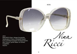 NINA RICCI Paris Vintage Sonnebrille, Handmade in France, Kunststoff-Gestell, Front und Bügel komplett mit Strass besetzt, 80er Couture, hellblaues Glas, große Gläser mit Verlauf, ausgefallen