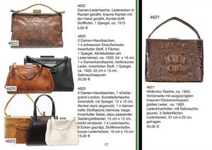 Konv. 3 Damen-Handtaschen, 1 x Dollargrand London, Kunstledertasche, Innenfutter Stoff, mit Spiegel, 12 cm x 10 cm, Henkel stark abgenutzt, 1 x Damenhafte, Stofftasche, Valmoda, beige, Innenfutter Seide, dazu passend Seidengeldbeutel, 15 cm x 12 cm, leicht verstaubt, 1 x Ledertasche, 8 Ecken geprägt, Stoffinnenfutter, kurzer Lederhenkel, 16 cm x 10 cm