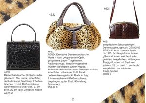 FENDI Exotische Damenhandtasche made by Italy, Leopardenfell Optik, geflochtene Leder Tragehänkel, Reissverschluss, intigrierte geheime Münzen-Geldbörse auf der Klappe, Lederumflochtene Röhre mit Silber Verschluss, Innenfutter: schwarzer Stoff, Fendi Lederemblem gedruckt mit made by Italy, 2 Innentaschen mit Reissverschluss, ungetragenem guten Zustand, l: 43cm, h: 26cm