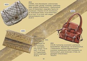 CHANEL feine Abendtasche, schiemerndes silbernes Leder, geprägt, Innenfutter rosefarbene Seide, goldener Drehverschluß, 1 Reißverschluss innen mit Geheimfach, eingenähte Tasche mit Druckknopf, 2 Taschen mit off. Innentaschen, off. Außentasche hinten, kurze Kettenträger, 18 cm breit, 13 cm hoch, sehr Elegant, Gebrauchsspuren innen