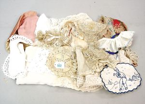 schönes Konv. Puppen-Kragen, Deckchen, Kissen, versch. Materialien, teilw. filigrane Baumwoll- und Häkel-Spitzen