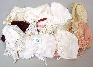 Konv. Puppenhauben, versch. Größen und Materialien, teilw. filigrane Spitzenborden