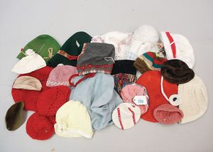 Konv. Puppenmützen und Hauben, älter und neuer, versch. Materialien und Größen