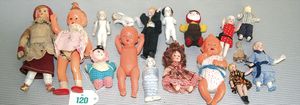 Konv. Puppenstuben-Püppchen, Porzellan, Masse und Stoff, versch. Größen und Alter
