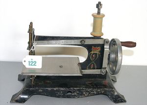 Kindernähmaschine, Blech lithogr., altersbed. Farbabplatzer, gemarkt, 24 cm