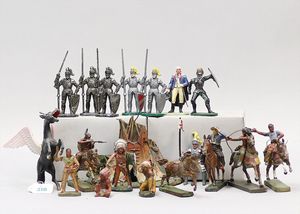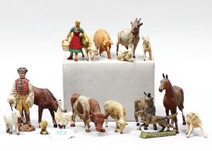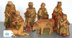 Konv. Krippe-Figuren, Guss, Masse, 6 Figuren, Josef, 2 Könige, 3 Schäfer, Höhe ca. 13 cm, Esel und Kuh