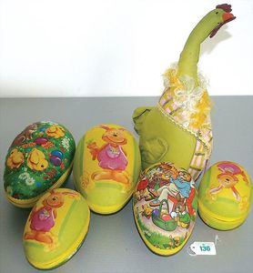 Konv. Pappeier (Behälter), neu, versch. Größen, dazu Stoffhuhn, Osterdeko