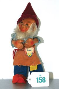 STEIFF Konv. 5 Teile, stärker bespielt, älter und neuer, 1 x mit Knopf und Fahne