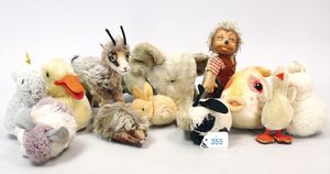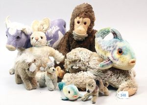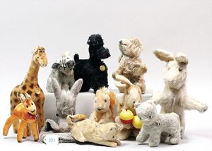 STEIFF 12 Tiere, stärker bespielt, teilw. mit Knopf