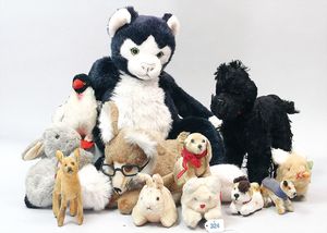 STEIFF Konv. 9 Plüschtiere, älter und neuer, stärker bespielt, teilw. mit Knopf