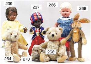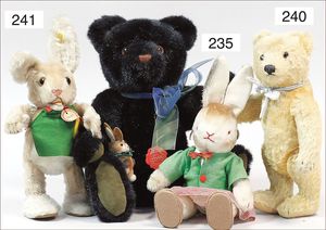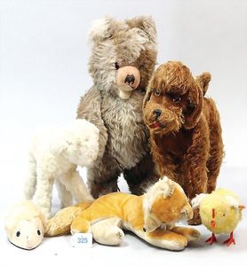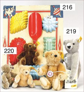 STEIFF Konv. 5 Plüschtiere, stärker bespielt, 1 x mit Knopf