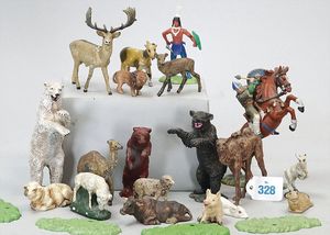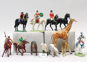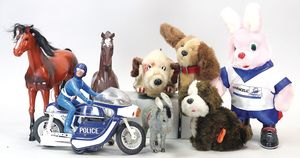 Gr. Konv. Kunststofftiere und Figuren, Sockel Metall, gemarkt Detail Made in England