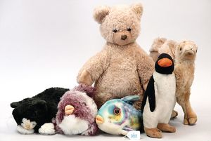 STEIFF Konv. 6 Plüschtiere, bespielt, teilw. mit Knopf, versch. Größen
