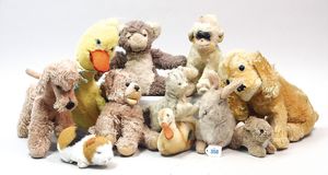STEIFF Konv. 11 Plüschtiere, neuer und älter, stark bespielt, teilw. mit Knopf