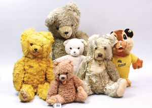 STEIFF Konv. 7 Plüschtiere, stärker bespielt, teilw. mit Knopf